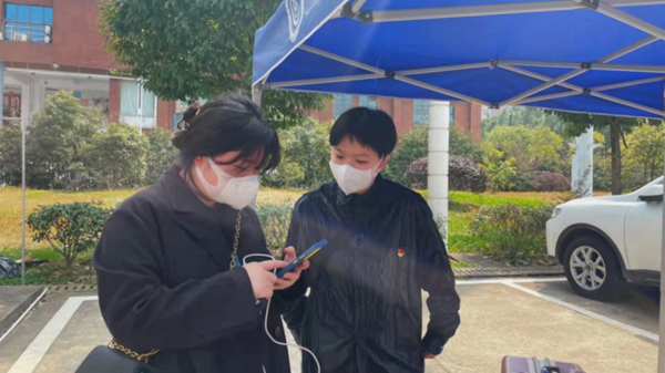 在志愿服务的第一天,有很多不懂的地方,比如说给别人打电话催打加强针,要说些什么,如何组织话术,以及一些不太明白的信息,我会去询问其他的同事,她们都会耐心地帮我解答。