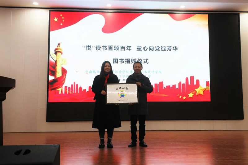 12月30日,中南林业科技大学涉外学院院长周志宏,传媒与艺术设计学院副院长陈敏、党总支书记王莉、教工支部书记李天舒等一行9人前往望城区丁字湾街道双湖小学举行图书捐赠仪式,双湖小学校长陈航、副校长李芳、教导主任叶李出席仪式。学院此次活动旨在传递爱心、传播知识、促进共建,更好地为乡村振兴提供实践服务,献礼建党一百周年。