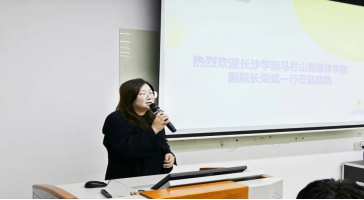 活动伊始,传媒与艺术设计学院副院长陈敏致欢迎辞。她首先对长沙学院马栏山新媒体学院副院长荣斌一行的莅临表示热烈欢迎与衷心感谢,同时勉励在场考研学子,既要以坚韧不拔的意志迎接挑战,也要以沉潜专注的心境积蓄力量,全力以赴追逐学术理想。