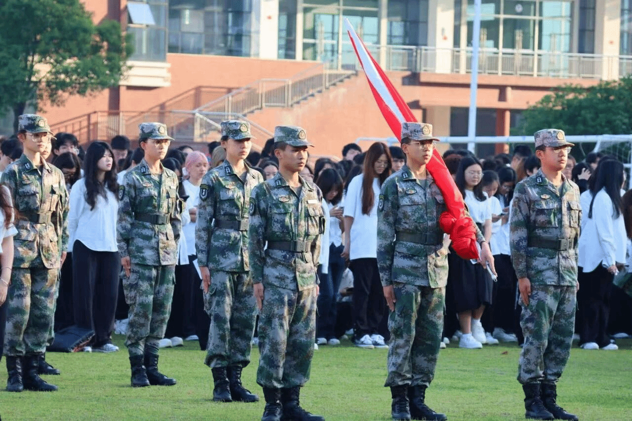 雷锋连国旗护卫队踏着晨露而来,锃亮的枪刺划破薄雾,正步声如战鼓擂动。当国歌奏响,全场人屏息凝视,奏唱中华人民共和国国歌。国旗升至顶端的刹那——家国情怀与青年热血同频共振。