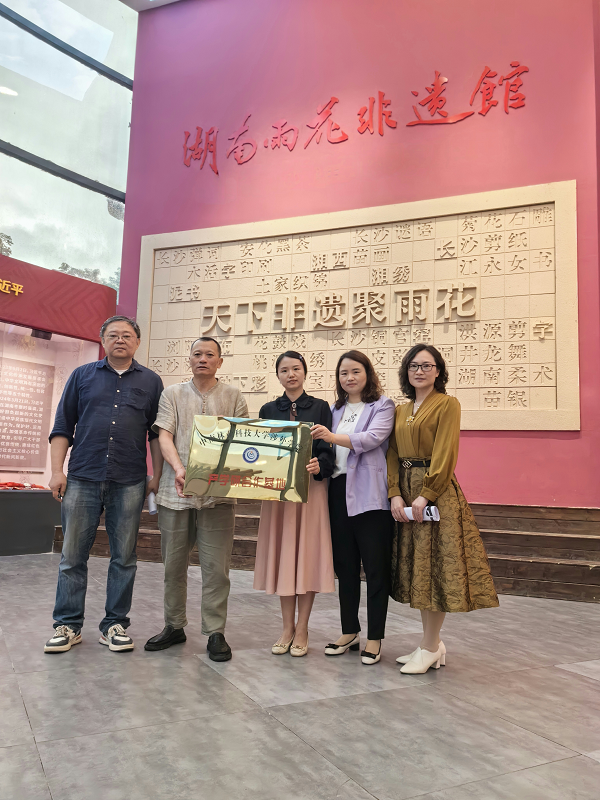 为落实教育部、省教育厅关于高校毕业生就业工作的有关文件精神,进一步加强校企合作,在中南林业科技大学涉外学院院长助理王佳怡与传媒与艺术设计学院副院长陈敏的积极推进下,4月29日,产品设计教研室章虹主任、谢亚兰老师、龙彩凤老师等一行人走访了湖南雨花非遗馆,为毕业生开拓就业创业岗位和机会。
