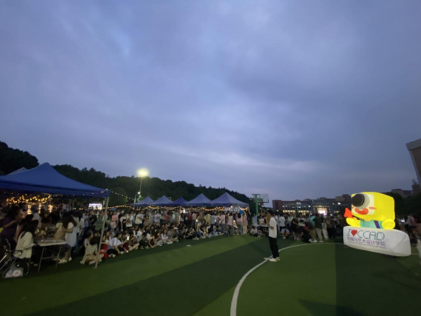 在开幕式上,学生和老师们共同用欢乐的舞蹈点燃了青春的活力,用动人的歌声诉说了离别的不舍,现场气氛热烈,高潮迭起。尾声时,学院领导一同来到舞台中央,按下启动按钮,正式开启了传媒与艺术设计学院2022创意设计周。