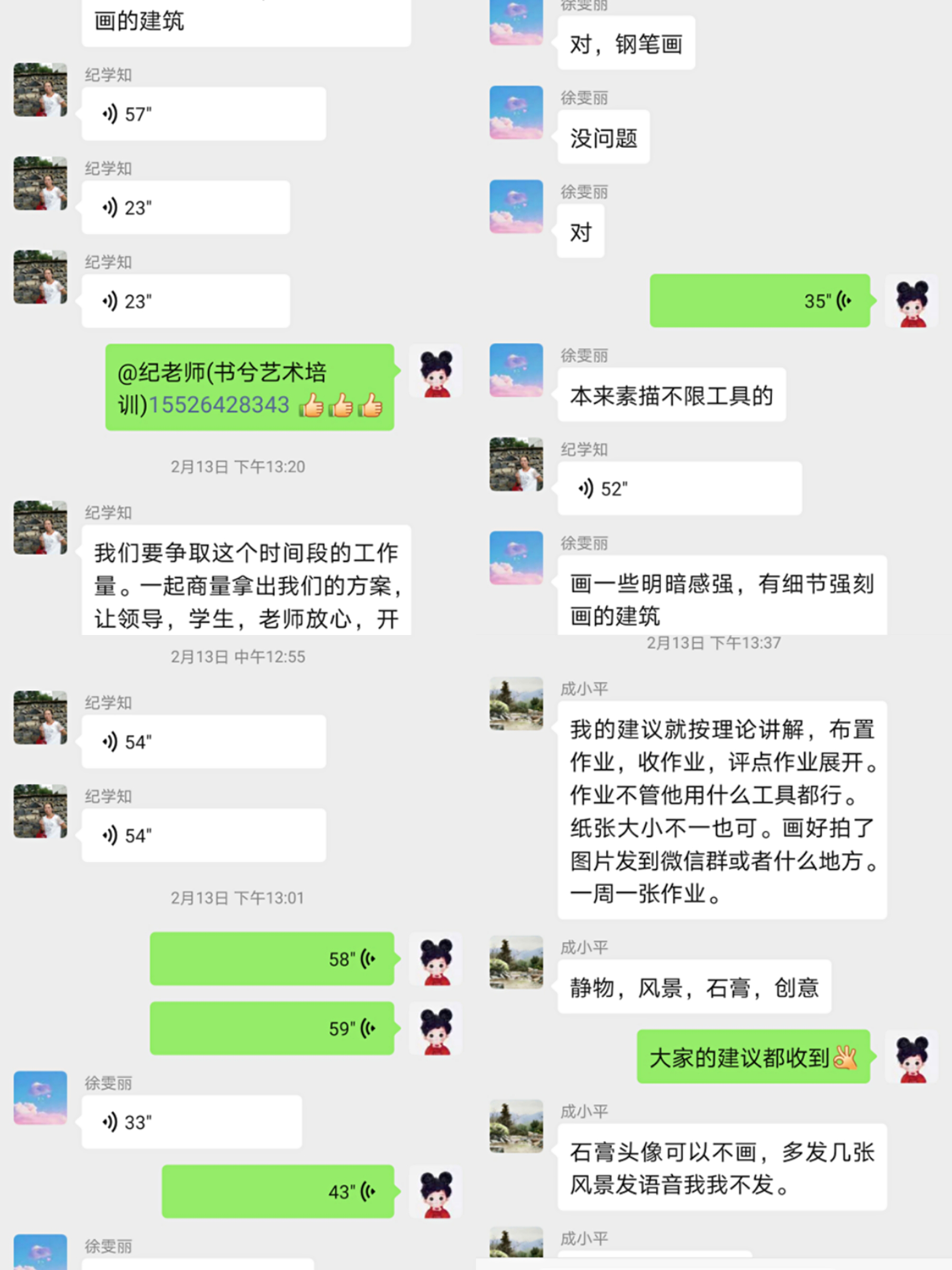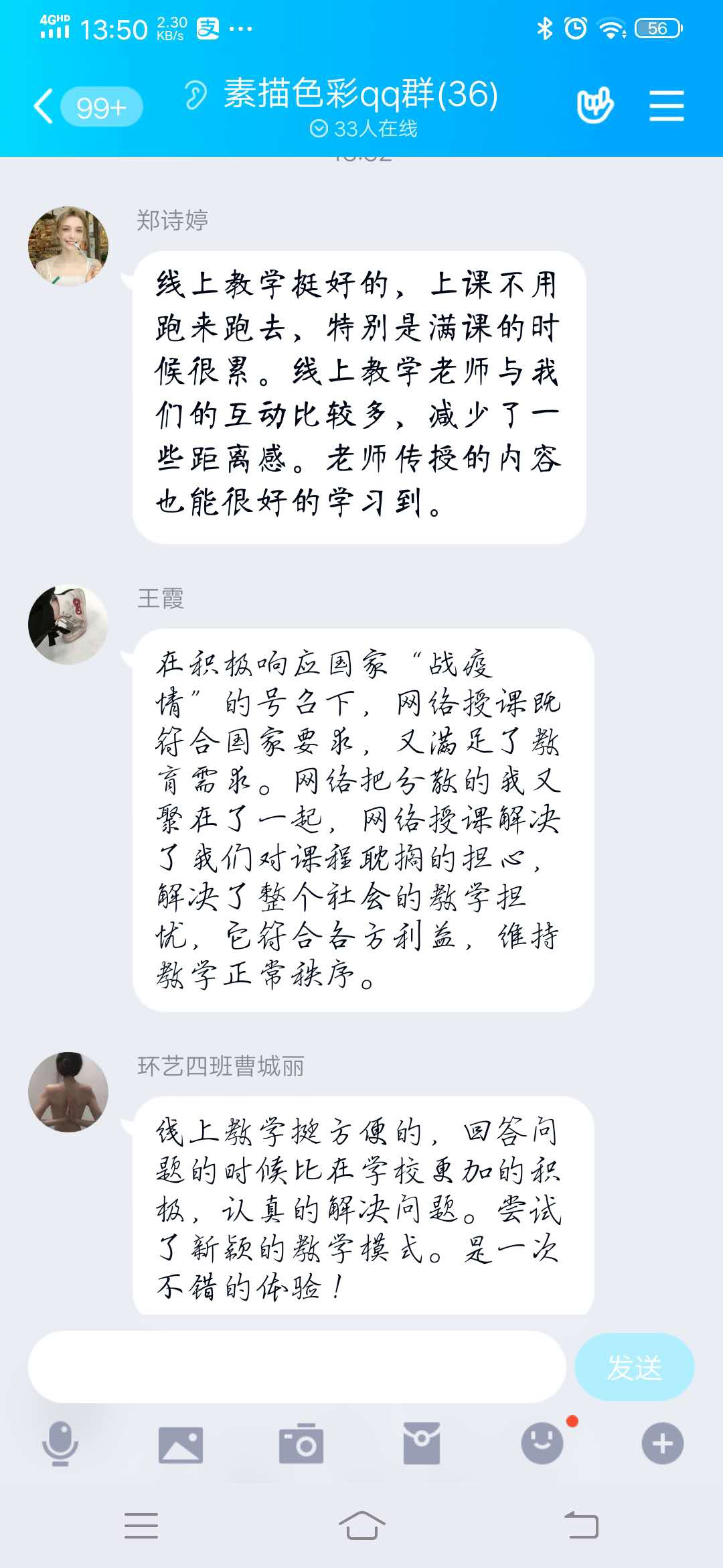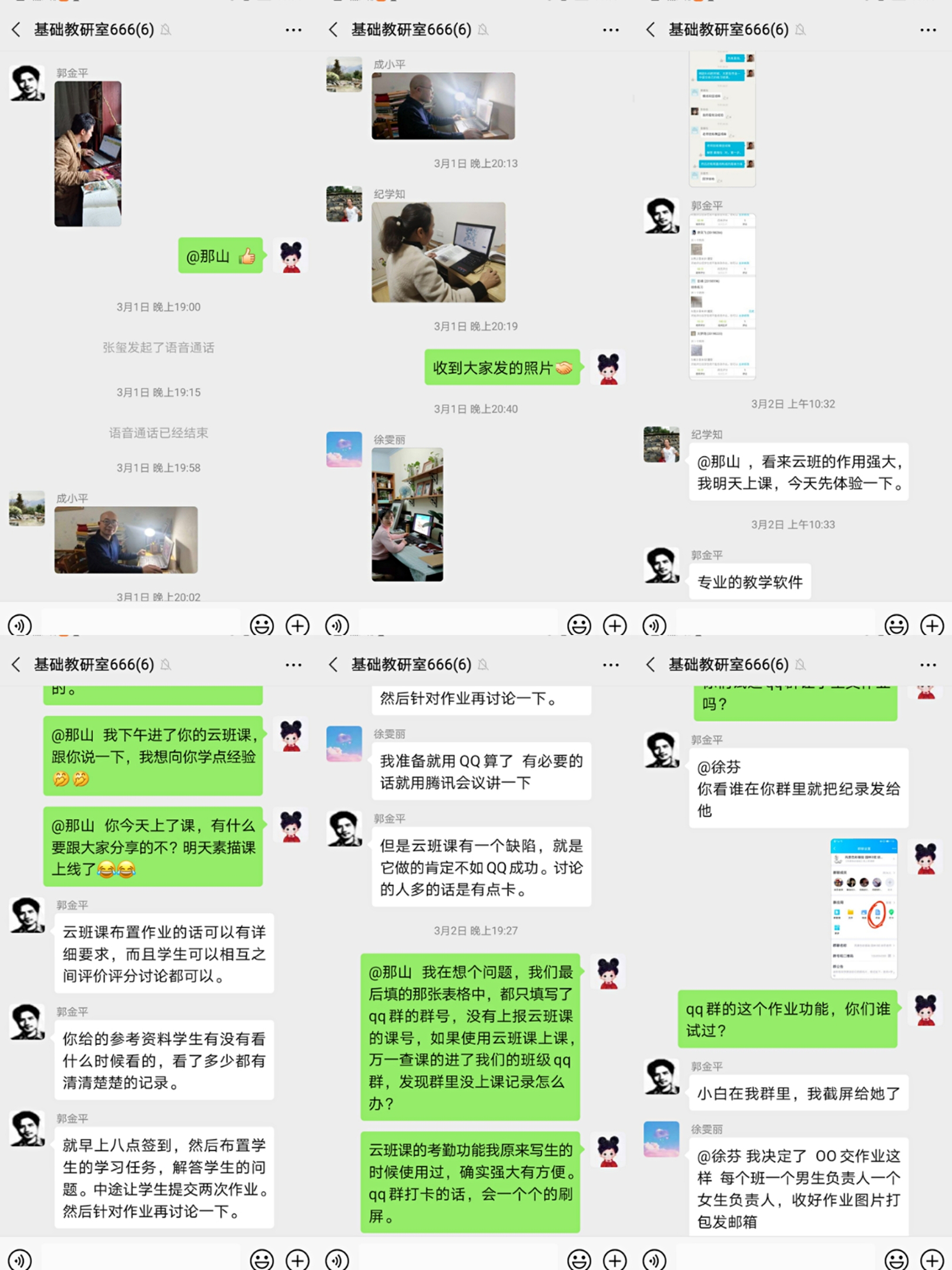 为了提高线上教学质量,老师们在完成了第一次线上教学后,就都将自己的上课体验、线上平台的使用感受以及学生的反馈发到群里,老师之间相互交流经验,交流群中的气氛非常好。通过不断的摸索和实践,现在老师们都是很熟练的“主播”了。
