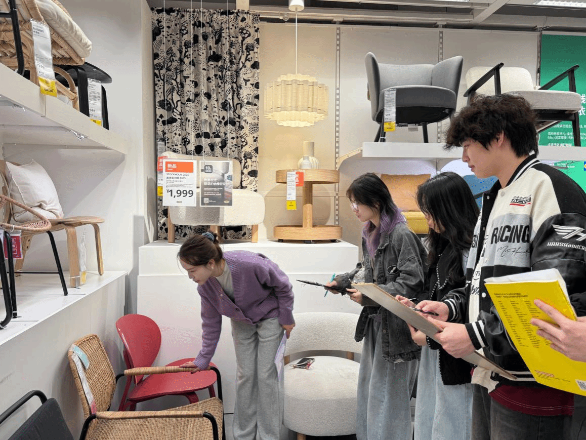 为深化产学研融合,创新实践教学模式,近日,我院2023级产品设计专业学生在章虹老师的带领下,走进长沙洋湖宜家商场,成功开展了一场以“拆解功能架构,践行可持续设计,解码宜家产品设计智慧”为主题的创意实践活动。本次活动通过实地调研与工作坊相结合的形式,引导学生在真实商业场景中深入探索品牌的产品设计逻辑与可持续理念,有效提升了学生的产品分析与创新设计能力,为后续创意产品设计积累了宝贵经验。活动由中南林业科技大学涉外学院新视界设计产业学院提供支持。