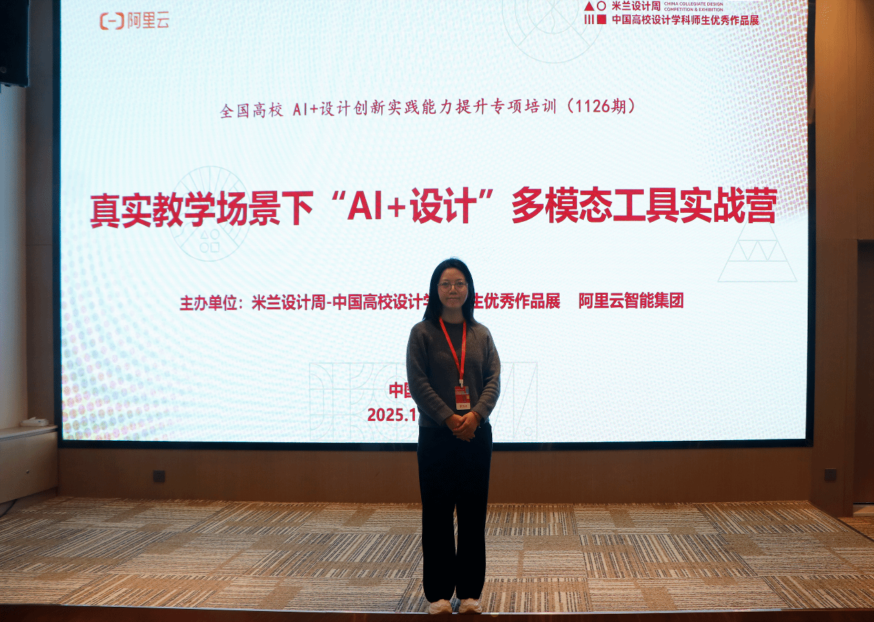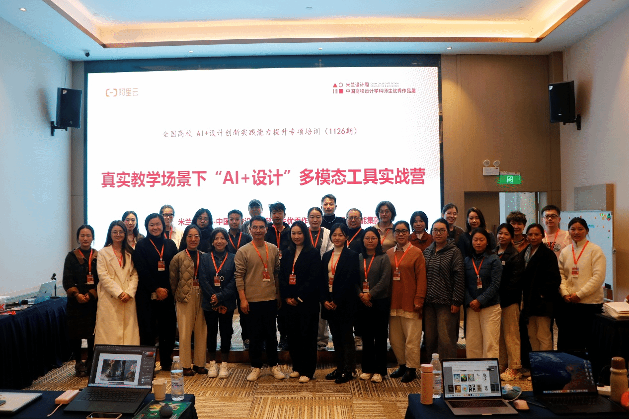 为积极响应国家“人工智能+”行动计划,推动AI技术与设计教育深度融合,2025年11月27日至29日,米兰设计周中国高校设计学科师生优秀作品展组委会与阿里云智能集团联合主办的“全国高校‘AI+设计’创新实践能力提升专项培训”首期品牌课程——“真实教学场景下‘AI+设计’多模态工具实战营”在武汉顺利举行。在中南林业科技大学涉外学院新视界设计产业学院的大力支持下,我院风景园林专业教师易逸瑜与来自全国多所高校的艺术设计类专业教师齐聚一堂,共同探索AI技术赋能设计教学与创作的前沿路径。