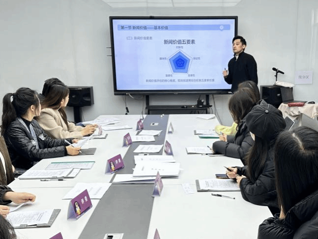 付博老师以《出镜记者与现场报道》课程参赛,围绕“电视新闻直播选题的价值取向”展开教学。他通过剖析经典案例,深入浅出地讲解了新闻价值要素、事件性新闻与故事性新闻的区别,以及动态报道中的不确定性把握,展现了扎实的理论功底与鲜活的案例教学能力。