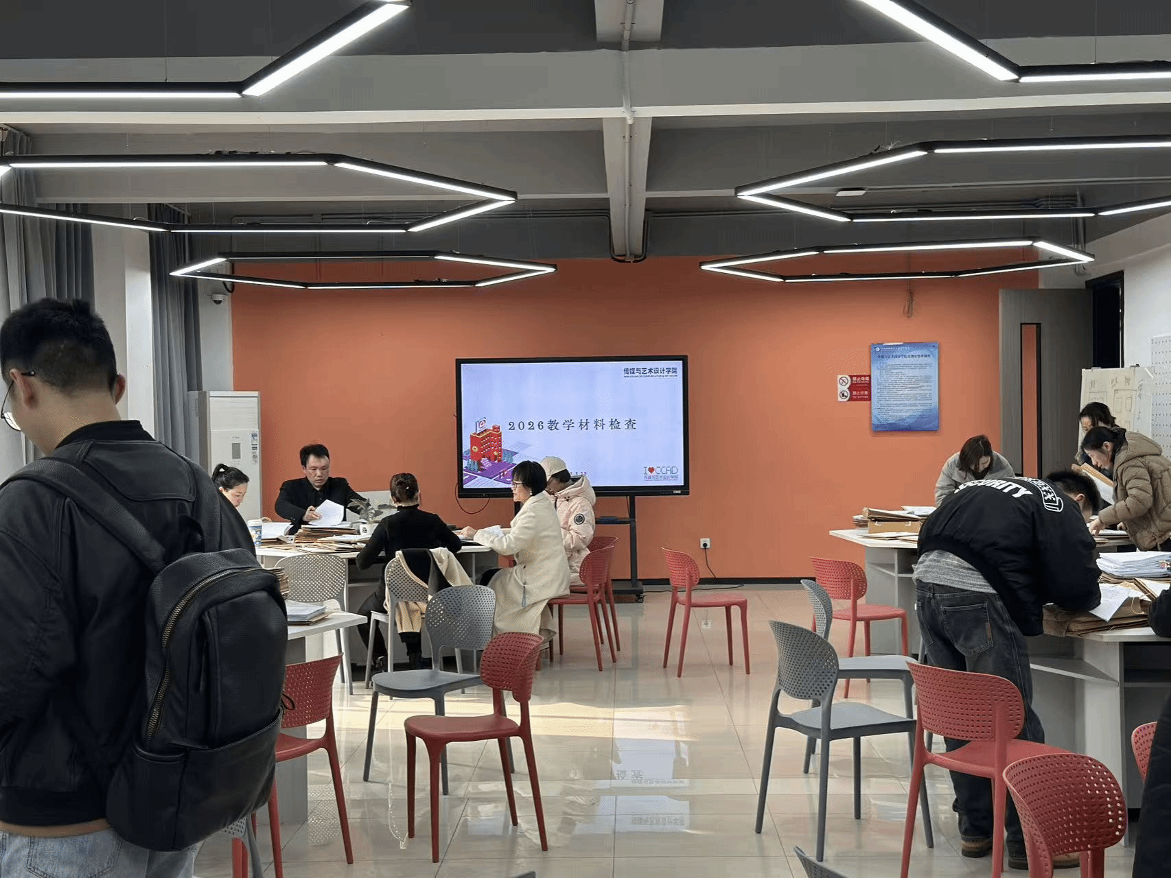 为确保新学期教学工作有序开展,进一步夯实教学质量保障体系,传媒与艺术设计学院于3月18日组织开展教学材料专项检查工作。由学院副院长陈敏、院长助理易旸、各教研室主任、教师代表组成检查小组,对2025秋学期与2026年春学期的教学材料进行全面检查。