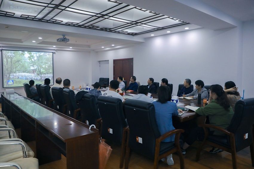 会上,与会人员集体观看了中央电视台和湖南卫视关于习近平总书记到湖南考察的新闻。