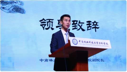 大会迎来香槟祝酒环节,董事长朱定强发表祝酒词,祝词中表达了对中南林涉外的国际之花长开不衰的美好祝愿。