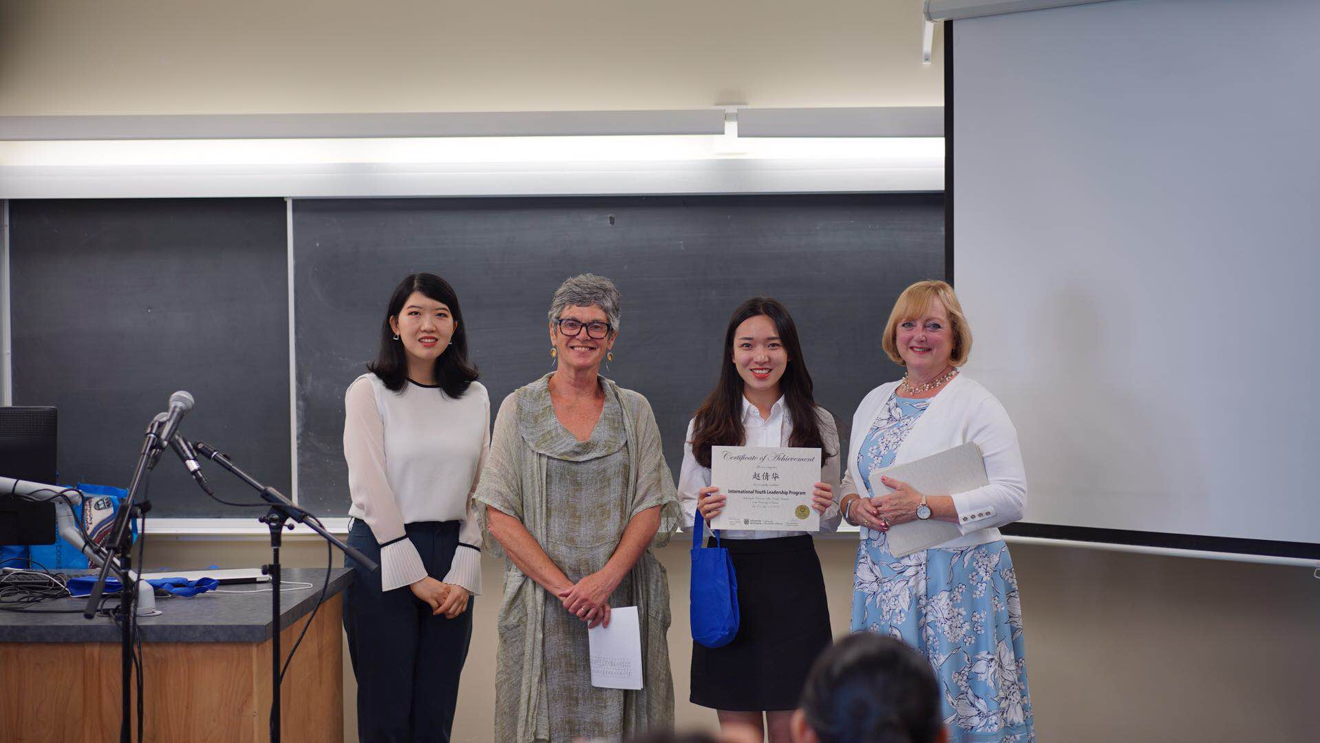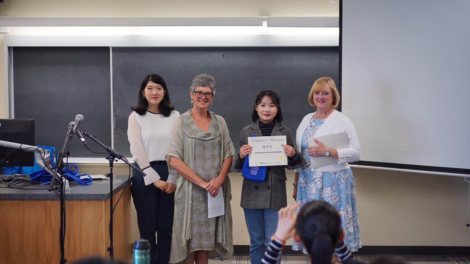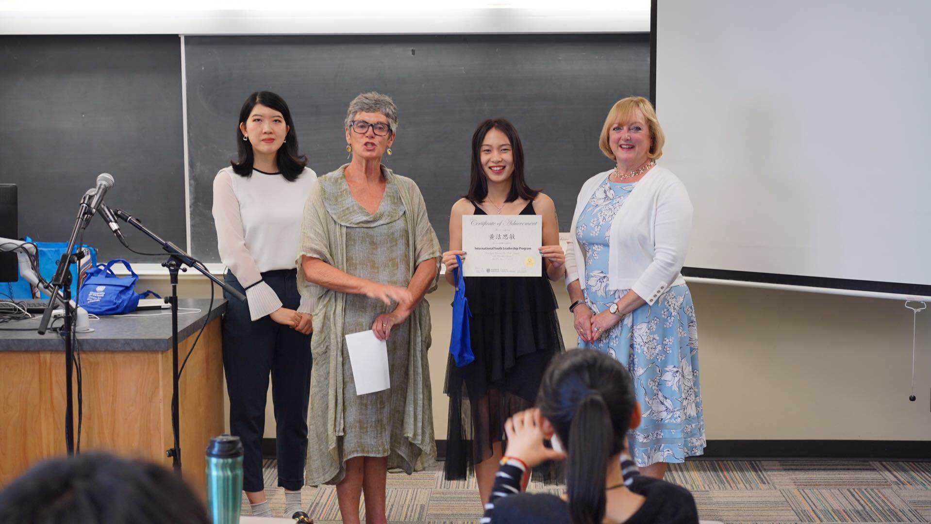 老师代表王梓霁上台致辞,她首先向无微不至照顾我们的海外导师们表示感谢,接着提到了学生们在此次大学课程体验中的感受,以及学生们在此次行程中的收获。最后王梓霁老师给予了学生和其他老师以及维多利亚大学美好的祝愿。