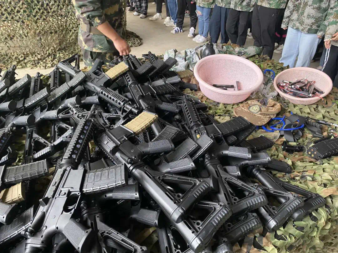 我们身穿队服,昂首挺胸。这似乎不是一次拓展活动,而是觉得自己是一名真正的军人。每个人手握枪支,严肃警觉,准备开启一场酣畅淋漓的战场“厮杀” !