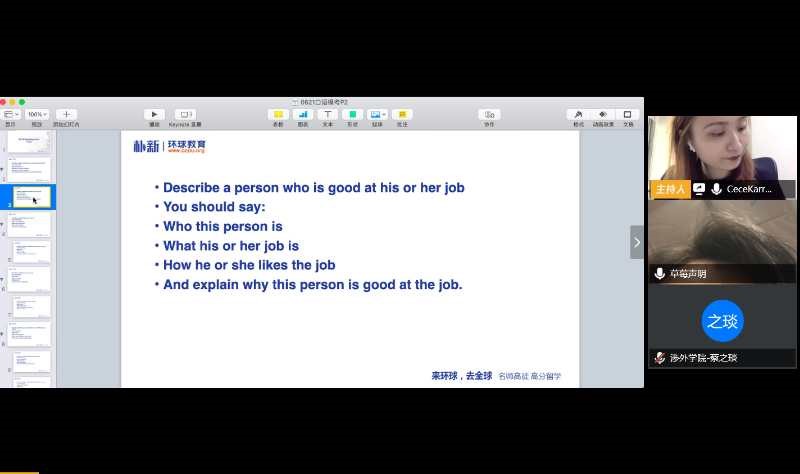 为了让2017级的国际班学生更好地迎接雅思口语考试,提高他们的雅思口语应试能力,实现海外名校梦,2020年6月21日下午,国际班2017级学生进行了口语模拟测试,环球教育老师刘曦和郑子瑜担任本次考试的考官。2017级全体学生参加此次模拟测试。本次测试采取线上模式进行。
