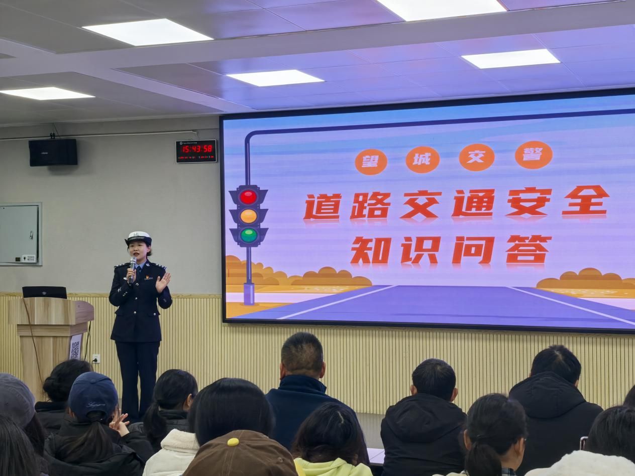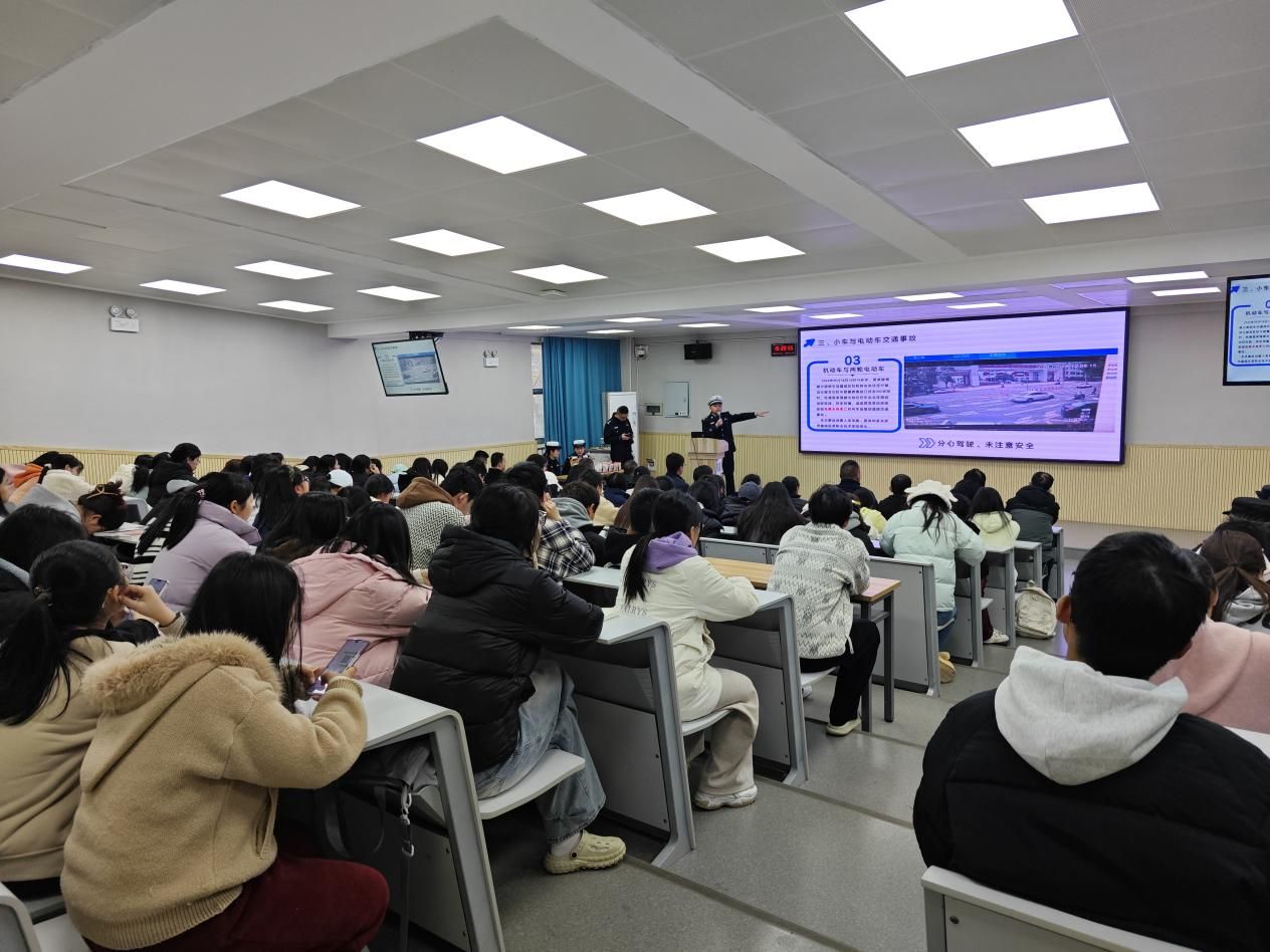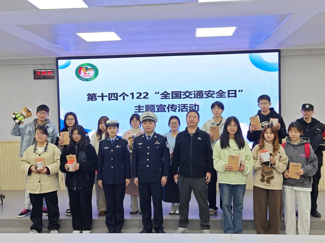 为进一步提升师生交通安全意识,预防和减少校园交通事故发生,12月4日下午,由学校保卫处联合长沙市公安交管支队望城大队开展的“122全国交通安全日”主题教育活动在明德楼1210报告厅举行。副大队长杨维担任主讲嘉宾,宣传专干徐美伊组织知识抢答互动,共有包含学生、物业、商业及后勤专职司机在内人员共140人参加此次宣讲活动。