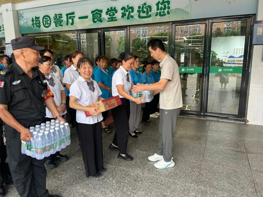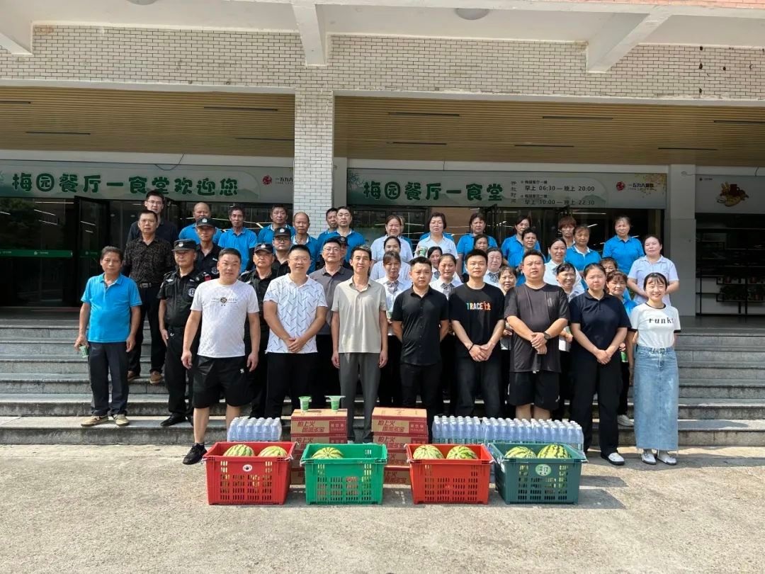 炎炎夏日送清凉,点滴关怀沁人心。7月30日上午,校领导携后勤处慰问暑期值守的一线安保和物业工作人员,为暑期坚守岗位的物业和安保人员发放慰问物资。