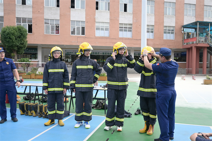4、专业救援:消防队抵达后接管火场,演示灭火器使用、呼吸器穿戴等技能,并对演练过程进行专业点评。
