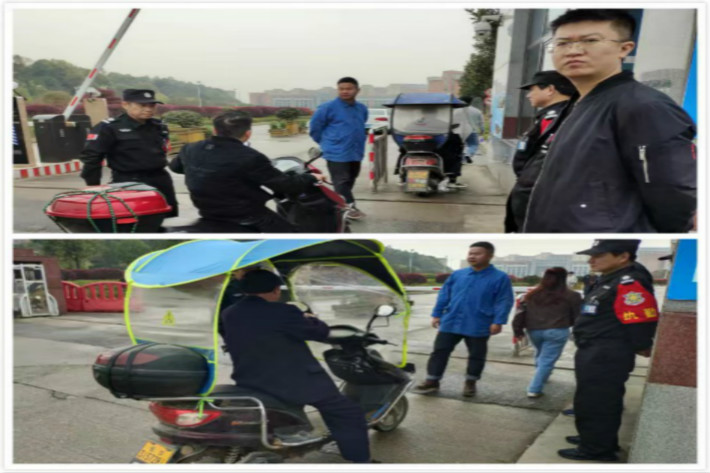 随着学院周边基础设施的不断完善,各类餐饮娱乐商铺也悄然而起,虽增加了学生的购物消费选择,但与此同时也有不少“三无黑作坊”,利用线上平台向学生出售无保障的食品,为有效打击“黑外卖”在学院内肆虐,提高学生自主实地就餐率,养成绿色环保就餐风。保卫处就此展开专项整治活动。