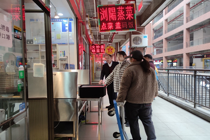 后勤处副处长徐建兵,针对目前校园内宣传栏张贴混乱、板面斑驳不堪等情况,对相关负责人逐一提出建议,各责任科室共同商榷改进措施,并现场进行初步的处理。检查商业楼的过程中,针对部分商户占用消防通道的问题,徐建兵副处长对占用消防通道的商户进行严肃警告,同时对安全工作完成出色的商户提出表扬。