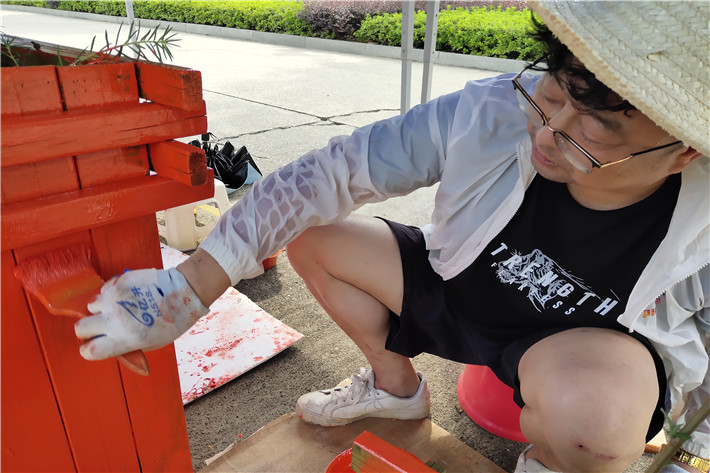 7月5日-6日,长沙的地表温度瞬间飙升至42摄氏度,烈日炙烤着大地,几朵白云悠然地在蓝天飘摇。后勤处维修中心及保洁绿化中心陈莽、李强飞、彭克雷、魏勇春、周益梅等人,自力更生、主动作为、不畏酷暑、顶着烈日变身“最美化妆师”,及时将校园大门的花箱进行修补、刷漆,对校门口绿化进行修剪,为校园名片进行打磨美化。
