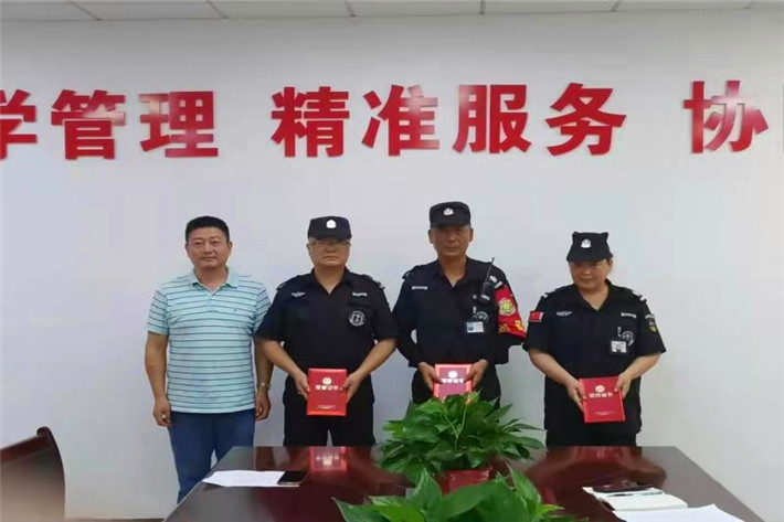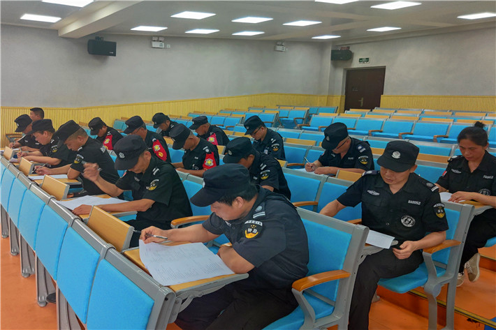 7月7日下午4时许,保卫处组织全体保安人员在一教学楼1310多媒体教室进行保安职业技能水平考试,本次考试内容切合保安日常工作实际,与其岗位职责息息相关。根据此次考试成绩以及队员日常工作表现,确定保安年中考核获奖人员。7月8日下午在后勤会议室进行年中安保工作总结暨表彰活动,首先由工作成绩突出的6名队员进行岗位工作经验分享,分别从如何提高安全意识和如何更好做好高校安保工作,从自身实际出发进行分析。而后由保安公司负责人谭国华做半年工作汇报,汇报内容有数据有事例且贴合实际,同时也指出自身存在的不足将改正完善,为进一步做好校园安保工作加以提质。最后综合本次考试成绩和日常工作考核,宣布获奖队员名单,分别由保安公司负责人谭国华、保卫处负责人朱荣栋、后勤处处长徐建兵给获奖队员发放荣誉证书并给予奖励。