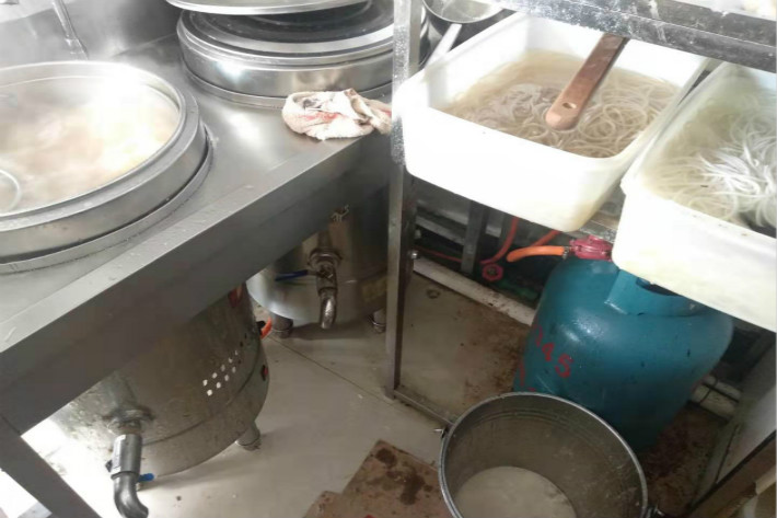 仅有为数不多的几家商户有着较高的风险防范意识,二楼一商户将热源与液化气罐保持安全距离之上且使用防火墙隔断,值得广大商户借鉴学习。