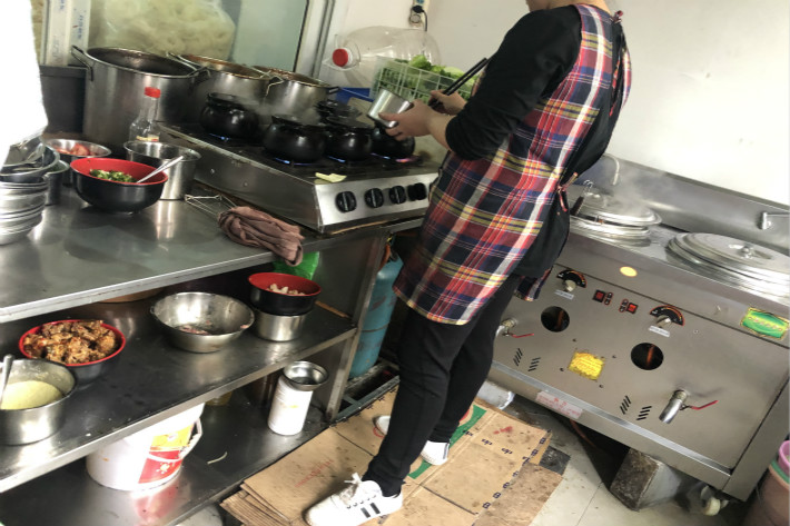 值得学习的商户之热源与液化气罐保持安全距离之上且使用防火墙隔断