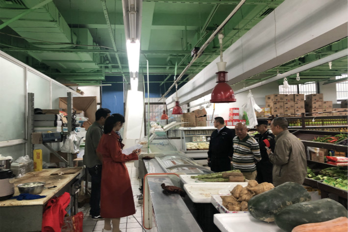 检查组针超市的隐患问题对其老板进行告知及风险讲解