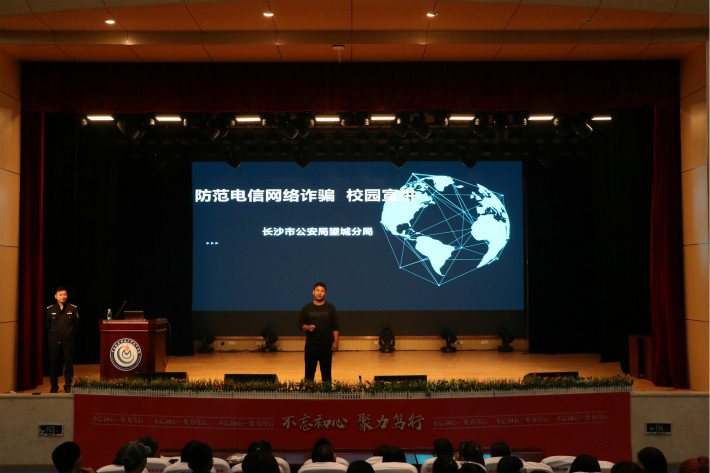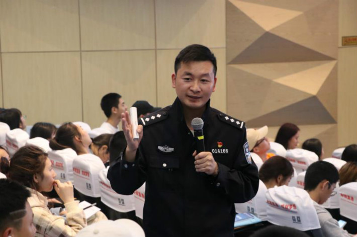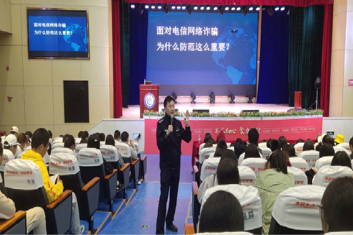 知识专题讲座在我校多功能报告厅拉开序幕,分别于10月13日、14日、21日三个晚上分六场次举办。本次讲座由学校学生工作处、保卫处联合组织,团委学生会网络信息部协助举办,丁字湾街道派出所胡建成警官受邀担任主讲嘉宾。全体新生参与讲座。旨在从源头入手,帮助学生掌握防诈骗知识,避免上当受骗。