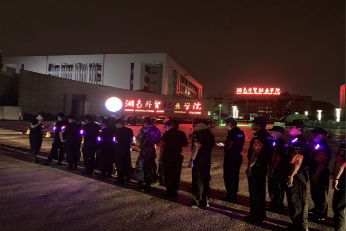 在此活动中,中南林业科技大学涉外学院积极响应号召,学院保卫处牵头,派出了由湖南湘锐保安公司、军事拓展训练营、校文明督察队组成的25人巡逻小分队,参与此次活动。