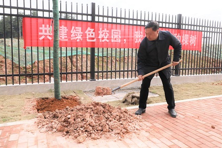 院长助理刘诗福在致辞中表示此次植树活动围绕“建设美丽中国 打造绿色校园”的目标开展,希望广大师生能够增强绿色环保意识,用实际行动全面提升校园绿化的质量和水平,营造出全学院植绿、爱绿、护绿、兴绿的良好氛围。