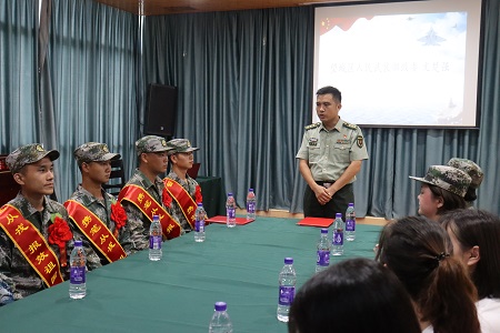 齐程程副处长首先对与会的领导、老师和同学表示欢迎,对9名光荣入伍的大学生新兵表示热烈祝贺。她指出,在今年新冠肺炎疫情多点散发的特殊背景下,我院钟委军等9名同学依照中华人民共和国兵役法规定,积极应征,光荣的被批准服现役,体现了高度的思想觉悟和极大的爱国热情。接着,她郑重庄严宣读9名入伍同学名单,现场响起热烈的掌声。