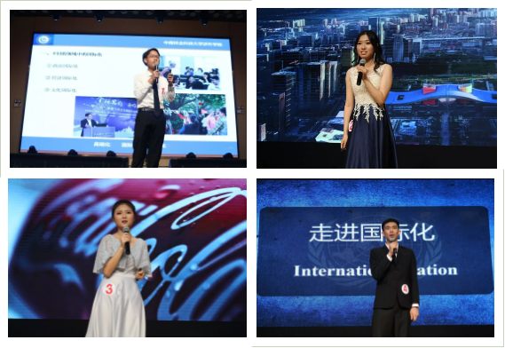 随后,各位选手通过PPT的形式以“携手国际化、共筑中国梦”为主题,进行演讲。其自信从容的表达和真诚饱满的热情展现出了当代大学生的青年领导力。紧接着,选手们带来了朗诵、舞蹈、配音等才艺表演,可谓精彩纷呈!最后,评委提问环节,选手们针对评委老师提出的问题,随机应变,充分表达了自己的观点,赢得了全场一阵又一阵的掌声。