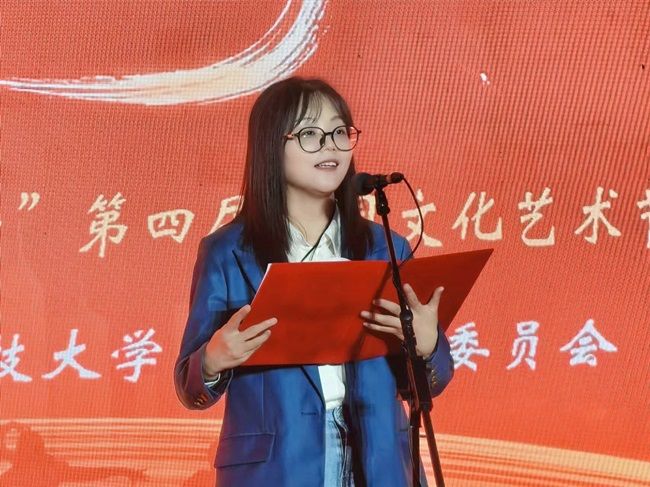 随后,校团委书记齐程程为第四届“青春‘艺’起野”校园文化艺术节致开幕辞。她表示,学院始终以为党育人、为国育才为根本使命,将校园文化建设作为立德树人的重要载体,持续涵养积极向上、多元包容的文化生态,并回顾了往届艺术节留下的珍贵记忆,对于本届艺术节主题中的“野”,她进一步表示,它不是毫无章法的张扬,而是突破自我的勇气,是对热爱全力以赴的执着,是敢于探索未知的闯劲。最后,愿同学们在这场文化盛宴中启迪智慧、收获友谊,以更昂扬的姿态书写属于自己的青春华章!
