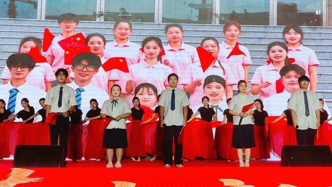 歌曲《夜空中最亮的星》以温暖的和声与清澈的主唱交织,唱出了青春历程中的迷茫与倔强,悠扬的旋律在体育场上空回荡,激荡起师生对梦想的执着追求与深切共鸣。