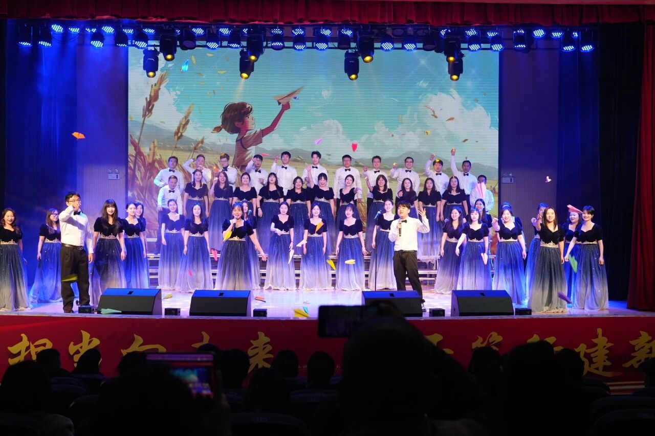 传媒与艺术设计学院合唱《稻香》,以温柔和声引领全场轻轻摇摆。歌声掠过耳畔,仿佛置身金色稻浪将时光的纯粹美好悄然镌刻于心。