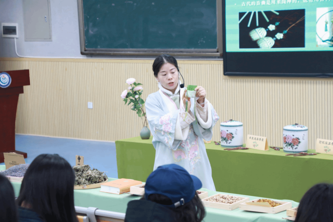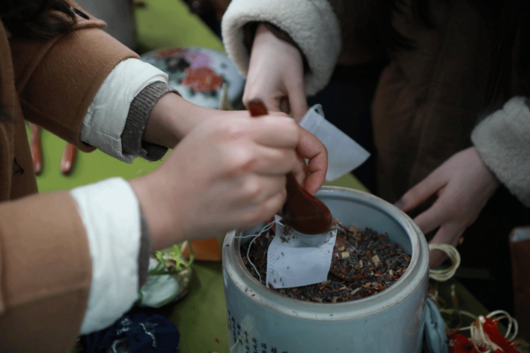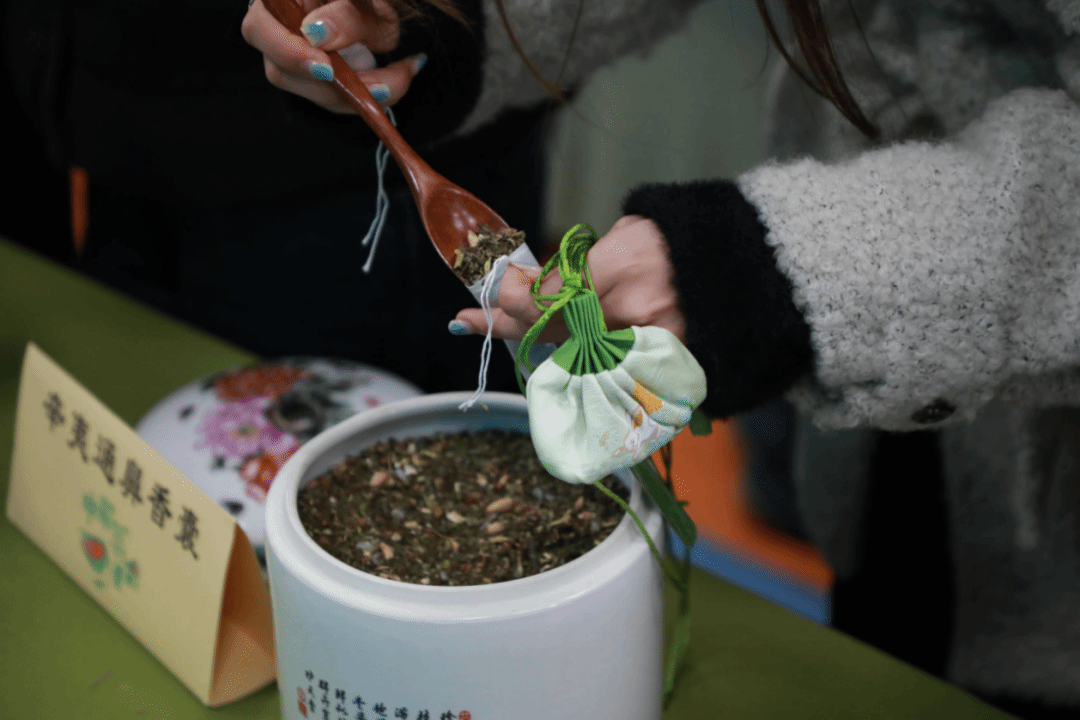 指尖撷芳草,匠心制香囊。在老师的指导下,大家挑选中草药并封存进这小小的香囊里。让自然的清香时刻萦绕身侧,为健康增添一份来自传统的守护。