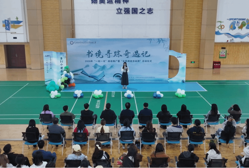 四月春深,书香满园。为营造爱读书、读好书、善读书的浓厚氛围,深入推进书香校园建设,秉承“一校一书——经典、精读、经世”的优良传统,积极响应首届“全民阅读活动周”号召,正值第31个世界读书日来临之际,4月22日,中南林业科技大学涉外学院在体艺馆举行2026年“一校一书”阅读推广、“全民阅读活动周”启动仪式。学院院长周志宏,教务处处长方东玉、学工处负责人范伶俐、图文信息中心副主任黄懿、图书馆馆长黄钰等出席活动,各数据资源机构代表及师生代表共同参与。