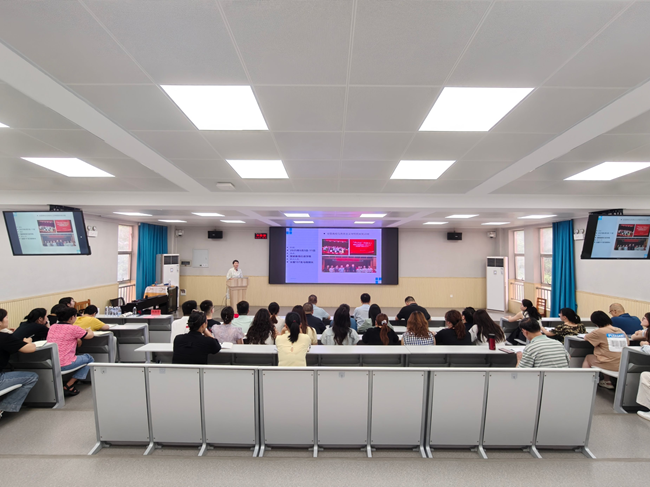 会上,马克思主义学院副院长姚湘莲作学习分享。 她以“以道铸魂,借术赋能“为主线,全方面系统阐释了轮训班精髓。面向未来思政工作她分享道,一要深刻把握时代使命与严峻挑战。体悟思政课建设是立心铸魂一号工程的战略地位,勇于破解教学深层难题;二要锤炼育人本领,弘扬“教育家精神”,构建与时代同频的教学模式,厚植家国情怀,既要“为了千秋万代”而坚定信仰,亦须“爱上脚下土地”而扎根实践。