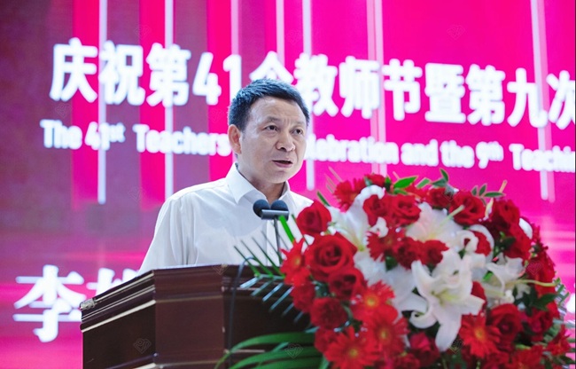董事长朱定强代表学院领导班子向广大教师和教育工作者致以诚挚的问候与感谢。面对人口结构转变和教育变革带来的挑战,他指出学院必须聚焦内涵建设与特色发展,构建不可替代的教育价值。学院将重点建设与办学特色和学科布局相匹配的实践教学平台,培养具有创新精神、实践能力与跨学科素养的复合型人才。对此,他向全体教师提出三点希望:一要争当“大先生”,筑牢育人根基,主动服务湖南省构建的“4×4”现代化产业体系,将产业发展需求融入教学内容,为区域产业发展输送优质人才;二要勇做“排头兵”,深化产教融合,实现教学与产业的同频共振,在赋能产业升级中展现新作为;三要甘为“筑梦人”,始终心系乡土、关注乡村发展需求,将教育资源与专业智慧下沉到乡村一线,在助力乡村振兴、改善民生福祉的实践中贡献力量。
