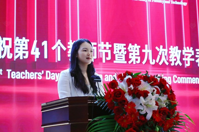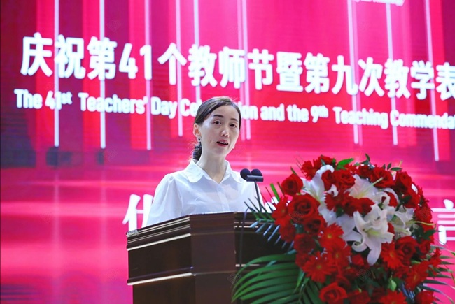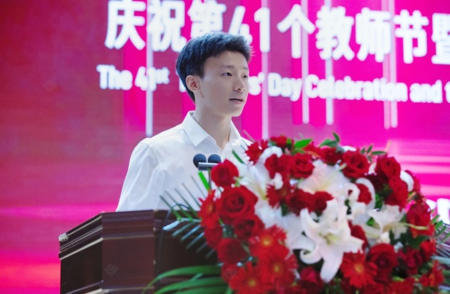 “师恩如灯,照亮我们前行的路;师情如泉,滋养我们成长的根。”2023级计算机科学与软件工程国际实验班陈昊添作为学生代表发言,向全体教师献上节日祝福。他深情回顾了老师们谆谆教导、耐心指引的感人点滴,表示将传承师者初心,以所学知识回馈社会、担当责任,并祝愿老师们身体安康、桃李芬芳。