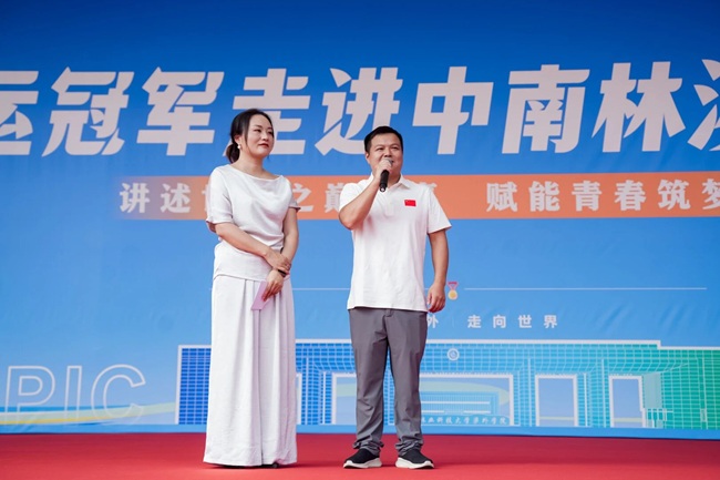 9月11日,中南林业科技大学涉外学院举行“奥运冠军进校园”主题活动,邀请北京、里约两届奥运会男子举重56公斤级冠军龙清泉,里约奥运会女子举重69公斤级冠军向艳梅走进校园,与六千余名师生零距离交流互动,分享征战世界赛场历程,传递中华体育精神和家国情怀,活动以“讲述世界之巅故事,赋能青春筑梦之旅”为主题,激励青年学子敢于有梦、勇于追梦、勤于圆梦。