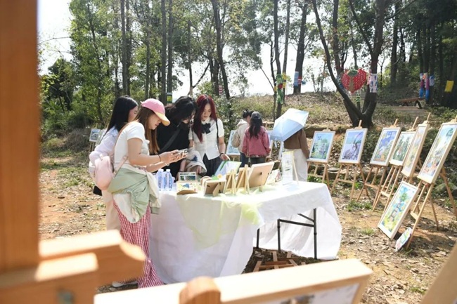 非遗漆扇、拓染手工包、油菜花风车、滴胶压花……他们以“不一样的我”为主题,精心策划了画作展示、文创展览等体验活动,吸引游客参与。