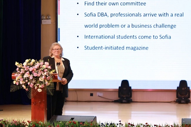 索菲亚大学全球学院高级总监王雅俐介绍索菲亚大学在中国的情况,并在会上表示索菲亚大学在上月被评为全美最佳表现的国际商学院,这就代表着最高级别的办学标准和办学质量。今后也将加强与硅谷领先高科技智能公司的校企合作,结合业务课程,为中国留学生们及全球国际的学生提供更多实习机会,满足学生高层次学习的个性化需求,开阔学生的国际视野,提升人才培养国际化水平。