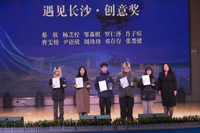 燕京理工学院学工处副处长杨文静为“遇见长沙·创意奖”获奖代表颁奖。