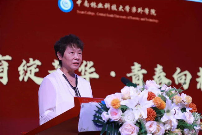 副院长马宗艳致辞,她首先对本次体育教学汇报活动的顺利开展表达了热烈地祝贺。她表示,我院积极贯彻党的二十大提出的“加强校园体育工作”,树立“健康第一”的教育理念,围绕“高端化、国际化、个性化”的办学理念,加强学院体育工作,深化体教融合,促进师生健康发展示本次体育教学汇报演出更是我院体育与艺术文化的融合。生命在于运动,健康离不开运动,她寄语同学们要努力提高锻炼意识,把运动场上不甘落后、坚持不懈、战胜困难的精神意志运用到学习和生活中去,做一个五育并举的新时代大学生。