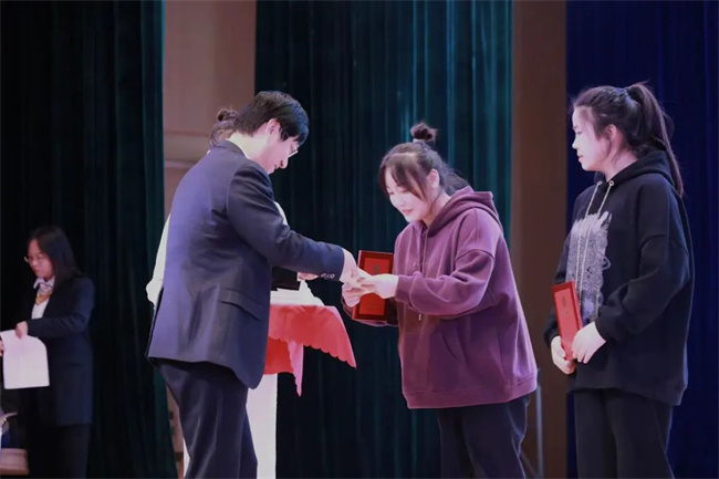 管理学院副院长肖菲为获奖的同学颁发证书。