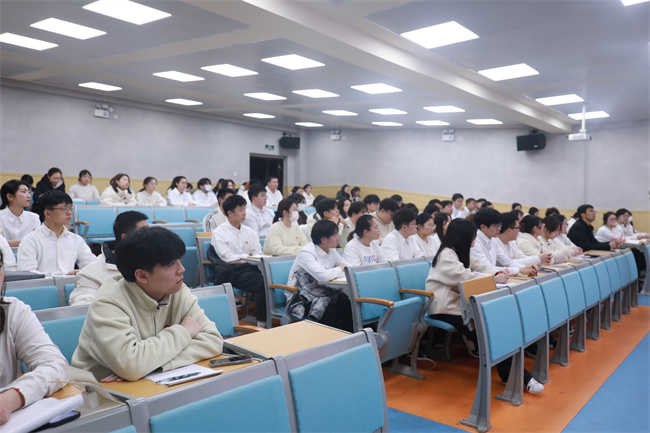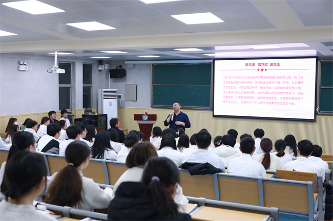 3月23日晚,中南林业科技大学涉外学院董事长朱定强在第一教学楼1310多媒体教室为2023年春季学期第33期预备党员培训班全体成员讲授《听党课 唱党歌 跟党走》主题党课。