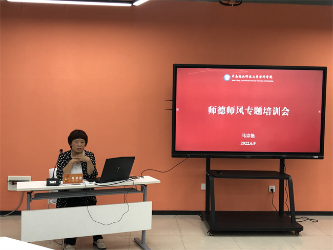 会上,副院长马宗艳梳理了自2018年以来,教育部及教育厅关于师德师风建设下达的各类文件及召开的重要会议,强调了师德师风建设的重要意义,随后带领大家重点学习了《新时代高校教师职业行为十项准则》、《湖南省高校教师违反职业道德行为处理实施办法》、《关于进一步加强普通高等学校教风学风建设的意见》、《中南林业科技大学涉外学院教学事故认定及处理办法》等文件精神,结合高校教师违反职业道德行为相关案例进行了讲解,同时对学院课堂教学与专业建设中存在的问题进行了重点剖析,要求全体教师筑牢思想防线,守好一段渠,种好责任田,提高教育教学能力,夯实专业基础,培养合格人才。