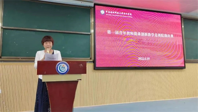 比赛结束后,副院长马宗艳对赛事进行总结与点评。她认为参赛教师在教学设计方面,能整体把握教学内容,教学目标明确;在教学内容方面,能抓住课程的重点内容,并体现了课程的德育功能。同时,副院长马宗艳从微课教学选题、多媒体设计、比赛技巧、肢体语言运用等方面对参赛教师提出改进意见。
