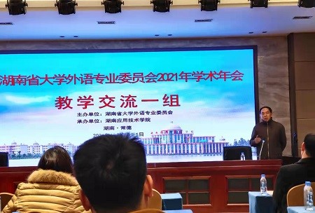 之后,我院派出协会理事及论文一、二等奖获得者参加此次学术年会。会上,李小霞老师上台宣读论文,针对自己的课题做出研究报告。语言文化学院院长彭爱和代表我院就大学英语的课程设置进行了交流,并详细介绍了我院本硕直通以及“高端化、国际化、个性化”等办学特色,为日后各院校之间的沟通交流搭建了桥梁。