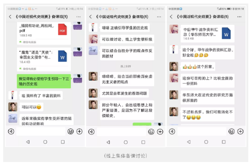 不期而至的疫情让我们改变了之前的教学轨道,对老师和学生都是新的尝试,也是新的挑战,如何吸引学生在线上对《中国近现代史纲要》这门课程有新鲜感,如何在新的教学模式中找出新的出路,思政课部担任这门课程的老师集体备课,决定利用名华在线强大的教学功能和教学资源,结合QQ的直播功能和线上答疑,辅以蓝墨云班课堂上的讨论,尽量达到线上学习与线下课堂教学质量实质等效。